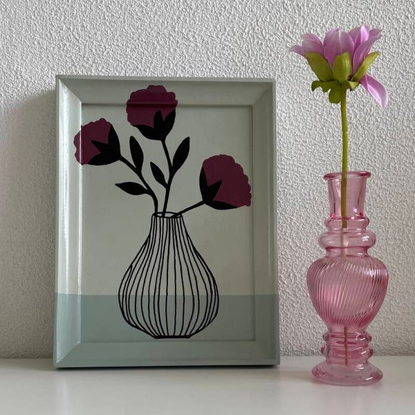 Schilderijtje foto 3 - vaas met drie bloemen - zijdeglans vernis.