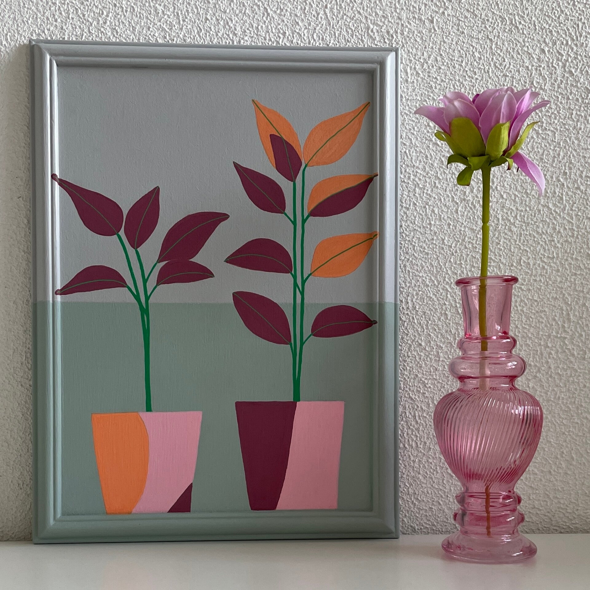 Schilderijtje foto 2 - plant in pot met vrolijke kleuren.