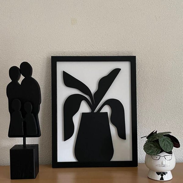 Ook te koop schilderij van hout "plant en pot" met eikenkleur lijst